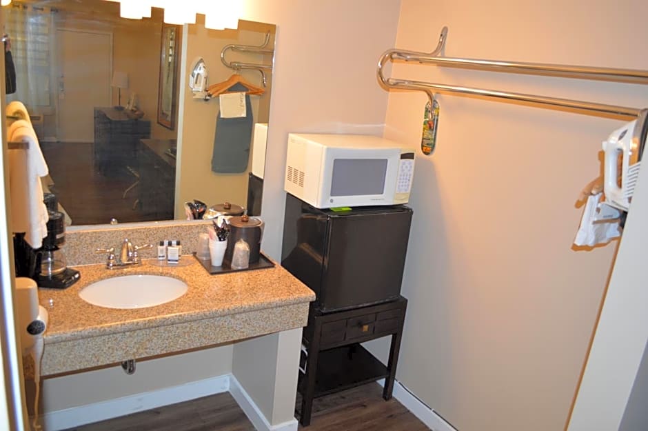 This quadruple room has a work desk, flat-screen TV and a private bathroom. A microwave, a small refrigerator and a coffee maker are also included.